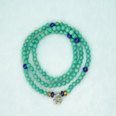 绿松石108颗佛珠手链项链 把玩手串 天然松石配泰银青金琥珀隔珠